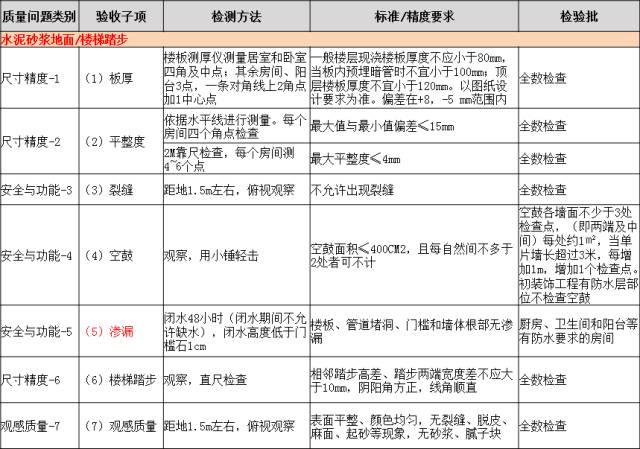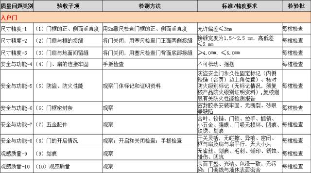 是指按照室内装饰工艺以及配套设备设施逐项检查。主要分为土建、入户门、门窗、栏杆等(土建包括墙面垂直度、平整度、空鼓、阴阳角、大小头、裂缝;层高、方正度;地面空鼓、裂缝、平整度、起沙、麻面、色差;饰面砖空鼓、色差、垂直度、平整度、高低差、勾缝、十字缝、破损;入户门、门窗和栏杆包括安装尺寸和观感)。